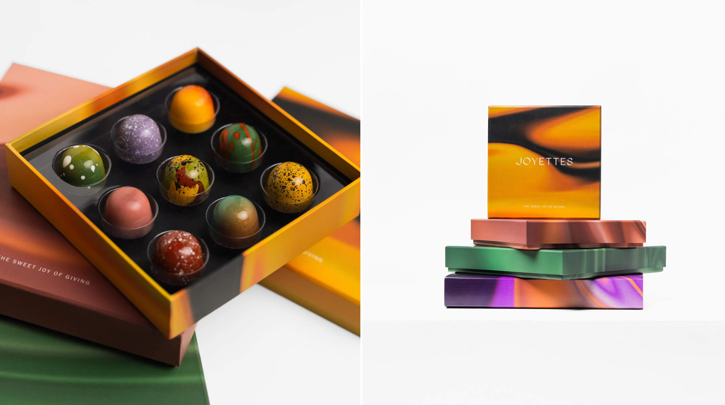 Joyettes projesi, "Hediye vermenin tatlı sevinci" (The sweet joy of giving) mottosu üzerine inşa edilen, görsel kimlik ile ambalaj mühendisliğinin kusursuz uyumunu sergileyen bir çalışmadır. Tasarım dili, modern ve güçlü bir duruş sergilerken detaylarda sadeliği (simplicity) korumayı başarmıştır. Renk paleti ve tipografi seçimleri, markanın vaat ettiği enerjiyi ve premium algısını tutarlı bir şekilde desteklemektedir.